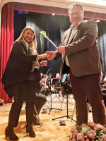 Im Rahmen des Konzerts fand auch der offizielle Wechsel beim Dirigat statt. Von Andrés Hancke, der wertvolle Aufbauarbeit im Orchester geleistet hat, übernahm Natalia Kazakova den Taktstock, sie arbeitet als Lehrkraft für Cello an der Kreismusikschule. Die offizielle Übergabe erfolgte durch den 1. Kreisbeigeordneten Tobias Gerhardus.