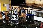 Gebhardshain. Die zuerst eintreffenden Kräfte stellten bereits bei der Erkundung der Einsatzstelle fest, dass bereits Teile des Gebäudes in Mitleidenschaft gezogen worden waren. Das Feuer hatte offensichtlich bereits auf das Gebäude übergegriffen. Aufgrund der neuen Erkenntnisse wurde die Alarmstufe erhöht. Damit wurde der Löschzug Steinebach im sogenannten Vollalarm und ein weiteres Löschfahrzeug (LF 10) aus Rosenheim alarmiert. Parallel wurden bereits Löschmaßnahmen ergriffen und eine Wasserversorgung hergestellt. Die Einsatzleitung teilte die Einsatzstelle in mehrere Abschnitte, darunter Brandbekämpfung am Müllcontainer und Kontrolle des Gebäudes. Dazu wurde eine Atemschutzüberwachung eingerichtet.