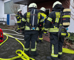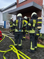 Nachdem der Zugang zum Gebäude geschaffen und ein Löschangriff aufgebaut war, konnte ein Atemschutztrupp ins Gebäude vordringen. Es stellte sich schnell heraus, dass sich zum Glück keine Personen mehr im Gebäude befanden. Der eingesetzte Trupp fand eine im Vollbrand stehende Küche im ersten Obergeschoss vor, die mittels eines C-Rohres zügig abgelöscht werden konnte. Der Brandherd befand sich laut Feuerwehrangaben im Bereich dieser Küche.