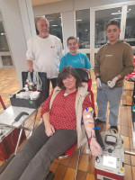 Mit dabei waren auch wieder einige Helfer des heimischen Jugendrotkreuzes. Leni Bröhl, Darleen Fendrich, Julius Herzog und Jannis Stricker sahen ihren erwachsenen Kameraden ganz genau zu und werden sich wohl bald selbst direkt um die Spender auf der Liege kümmern. Die JRK-Gruppe trifft sich alle 14 Tage donnerstags von 18 bis 19.30 Uhr im Rotkreuz-Gebäude. Dort werden sie auf ihre Tätigkeit in der Bereitschaft, zum Beispiel beim Sanitätsdienst vorbereitet. Man bildet ihre Teamfähigkeit aus, ermöglicht den Einstieg in die Erste Hilfe oder unterrichtet in Sachen Anatomie des Körpers. Wer Interesse an einer Mitarbeit hat, möchte sich bei der JRK-Leiterin Ayleen Kreit unter Telefon 0152-59684677 melden.