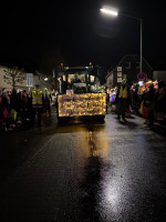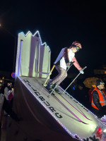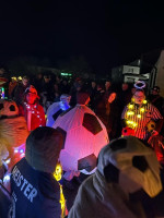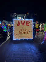 Bei einem Karnevalsumzug dürfen auch nicht die närrischen Totalitäten fehlen. Zusammen mit dem Kinderprinzenpaar Mia I. und Niklas I. schaute Prinz Hoffi I. von oben auf ein buntes Lichtermeer herab.