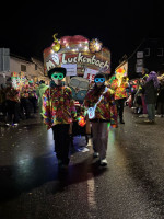 Elkenroth. Bei der Vielzahl an Karnevalsumzügen, die innerhalb von ein paar Tagen teilweise zeitgleich stattfinden, weiß man oft gar nicht, zu welchem man gehen soll. Der Jungmännerverein Elkenroth (JVE) hat dafür eine Lösung gefunden - statt den Zug tagsüber durch den Ort ziehen zu lassen, haben sie das kunterbunte Spektakel in die Nacht verlegt. Zum sechsten Mal zog der Nachtzug am Schwerdonnerstag (27. Februar) durch die Straßen von Elkenroth, mit dabei waren 21 Gruppen mit insgesamt 516 Teilnehmern und zahlreichen Zuschauern am Wegesrand, die gespannt auf Kamelle und die erleuchteten Wagen und Kostüme warteten.