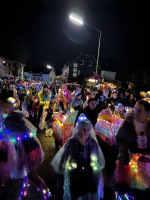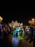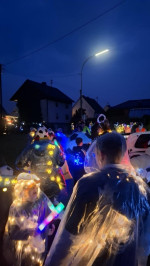 Funkelnde Lichter und bunte Farben erleuchten die Nacht beim Nachtzug in Elkenroth