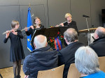 Zum Abschluss gedachten Pfarrer Tech und Dechant Kürten mit einem Abschlussgebet der Opfer. Musikalisch wurde die Gedenkfeier mit dem Flötenensemble der Kreismusikschule mit Mara Wittershagen und Lilith Schultheis unter Leitung von Simone Bröhl begleitet.