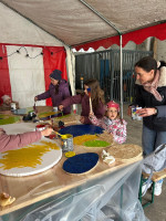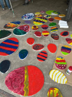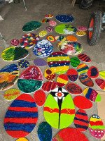 Rund zwanzig Kinder nahmen an dem kreativen Nachmittag teil und gestalteten mit bunten Farben und Mustern einzigartige Kunstwerke. Diese sollen im Dorf verteilt werden und den Bewohnern von Selbach Freude bereiten.