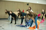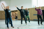 In verschiedenen Räumen des Bürgerhauses fanden parallel Übungen statt. Während in der Sporthalle Choreografien einstudiert wurden, probte der musikalische Ensembleleiter Sebastian Burbach im Jugendraum mit dem Chor. Unter anderem wurde die "Schmiedenummer" aus dem Druidenstein-Musical geprobt. Auch Schauspieltipps wurden gegeben und erste Solo- und Duettlieder erklangen in den Umkleideräumen.