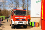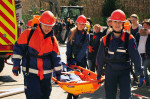 Zeitgleich wurden, von anderen Fahrzeugen aus, mehrere Schläuche in Richtung Halle ausgerollt, um dort die Brandbekämpfung vornehmen zu können. An den Einsatzstellen, im Innenangriff zur Menschenrettung, wurden mehrere "Atemschutztrupps" eingesetzt. Die vermissten Personen konnten schnell gefunden und gerettet werden. Die jungen Feuerwehrleute hatten eine "Verletztensammelstelle" eingerichtet, an der der Rettungsdienst im Realeinsatz tätig würde.