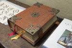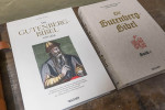 Natürlich will der Gutenberg-Jünger Zado die Eigenbau-Presse auch benutzen. Dafür fehlen derzeit noch zwei Platten, die das Papier halten. Papier war zur Zeit Gutenbergs ein wertvolles Gut, mit dem man sorgsam umgehen musste. Die von Gutenbergs Druckkunst initiierten Gebrauchsbibeln wurden zwischenzeitlich in die neue Schrift transformiert, damit jedermann sie lesen kann. Es gab einst Musterseiten für die aufwändig dekorierten Seiten und Kapitelanfänge. Reinhard Zado veranschaulicht die mittelalterliche Druckkunst mit bunten und goldverzierten Faksimile-Seiten an den Wänden und Nachdrucken alter Bibeln auf einer historischen Truhe. Vollbibeln waren lange Zeit sehr teure, extrem große und schwer zu handhabende Bücher, die oft mit Schlössern und Ketten gesichert wurden.