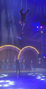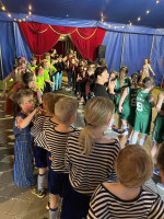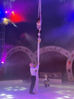 Mit sehr viel Einfühlungsvermögen, aber auch der nötigen Disziplin wurden die Kinder im Alter von sechs bis 14 Jahren trainiert und erarbeiteten mit den professionellen Trainern ein kurzweiliges und teilweise spektakuläres Programm. Allen voran die Luftakrobatik am Seidentuch und am Trapez ließ so manchen Gast den Atem anhalten, denn was die Kinder hier zeigten waren artistische Glanzleistungen. Ob der Spagat im Seidentuch in etwa acht Metern Höhe oder synchrone Überschläge am Trapez in ebenso schwindelerregender Höhe; hier zeigten die Kids ganz große Leistungen und es wurde greifbar, was ein professionelles Trainerteam leisten kann, wenn die Kinder mit dem nötigen Vertrauen, ohne Furcht aber mit Respekt und Disziplin an die Sache herangehen.