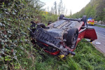 Verkehrsunfall Ortslage Oberlahr: Pkw überschlug sich, Fahrerin war eingeklemmt