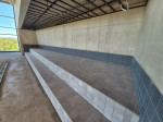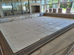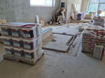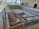 Punktuell sind einzelne Abschnitte in der großen dreigeteilten Halle bereits gefliest wie beispielsweise der zweistufige Sektor an der Längsseite (Richtung Stadion) des Sportbeckens, wo die „Kunst am Bau“ ihre Heimstatt findet. Künstlerin Judith Röder aus Höhr-Grenzhausen hatte als Siegerin eines Wettbewerbs, an dem über 100 professionelle und freischaffende Künstler und Künstlergemeinschaften teilnahmen, einstimmig den Segen des VG-Rates erhalten, den Part für 97.000 Euro umzusetzen. Ihre Gestaltungsüberlegung nimmt durch die Farbwahl Bezug auf das Element Wasser. Neun mundgeblasene Farbgläser, hergestellt in traditioneller Handwerkstechnik, sollen eine harmonische Licht- und Farbwirkung garantieren. Zum Hintergrund: Bei Hochbaumaßnahmen, die durch das Land gefördert werden, sollen gemäß der Verwaltungsvorschrift „Künstlerische Ausgestaltung öffentlich geförderter Hochbauten“ (Ministerium der Finanzen) Ausgaben für die künstlerische Ausgestaltung vorgesehen werden. Diese bemessen sich anhand vorgegebener Richtsätze, die auf die Bauwerkskosten angewendet werden. Auch der Beton einer größeren Bank ist mit Fliesen inzwischen verkleidet. Ansonsten jedoch ist in allen Dritteln das nackte Baumaterial präsent. Mit der Abdeckung soll rund um das Sportbecken mit seinen fünf Bahnen à 25 Metern begonnen werden, ehe die Männer vom Bau sich dem Kursbecken mit Hubboden und schließlich dem Planschbecken zuwenden, um die endgültige Beschaffenheit der Laufflächen herzustellen. Grundsätzlich erhalten die meisten Wände keinen zusätzlichen Überzug mehr. Sichtbeton bleibt das bestimmende Ausstattungsmerkmal in der Halle und dem Nebentrakt.