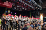 Nach der Pause ging es mit dem gleichen Elan weiter. Zunächst ließ das Orchester "The Last Flight" erklingen. Über "Concertino" und "Euphoria" ging es weiter zu dem weltbekannten Titel "Y.M.C.A". Für dieses Stück hatten sich die Organisatoren wieder etwas Besonderes ausgedacht - Hellinghausen bat den VG-Bürgermeister Berno Neuhoff, Hermann-Josef Esser (Vizepräsident des Landesmusikverbandes a. D.), Ellen Demuth (MdB) und weitere prominente Gäste auf die Bühne. Hier "staffierte" Hellinghausen die Gäste mit den passenden Kleidungsstücken und Accessoires aus. Die Performance der Prominenten sorgte für großen Applaus. Die musikalische Reise endete traditionsgemäß mit dem Gruß der Bergleute "Glück Auf". Ohne Zugabe ließen die Gäste die Musikerinnen und Musiker nicht von der Bühne. Zum Abschluss gab es stehende Ovationen für die Musikerinnen und Musiker, die Sopranistin und den Magier. (kkö)