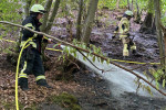 Um die schwer zugängliche Brandstelle letztlich erreichen zu können, mussten mehrere Schlauchleitungen bis tief in den Wald hinein verlegt werden. Der Brand konnte am Ende auf etwa 100m² Böschung begrenzt werden. Nach etwa eineinhalb Stunden waren die rund 45 eingesetzten Kräfte aus den Einheiten Betzdorf, Alsdorf, Grünebach und Scheuerfeld wieder einsatzbereit an ihren Standorten. Wertvolle Unterstützung lieferte einmal mehr der DRK-Ortsverein aus Betzdorf, der den Eigenschutz der beteiligten Feuerwehrangehörigen vor Ort sicherstellte. Zur Brandursache und zur Schadenshöhe liegen keine Informationen vor.