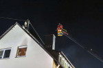 Hamm (Sieg). Die zuerst eintreffenden Kräfte konnten die Alarmmeldung bestätigen. Sofort nach dem Eintreffen ging der erste Angriffstrupp zur Brandbekämpfung und Menschenrettung vor. Weitere Kräfte errichteten vor dem betroffenen Haus eine Wasserentnahme aus einem Unterflurhydranten. Neben dem ersten Angriffstrupp rüsteten sich weitere Trupps mit Atemschutz aus und begannen mit den Löschmaßnahmen. Die Drehleiter des Löschzuges Hamm wurde eingesetzt, um einen Überblick über das Objekt zu bekommen. Bei dem Brandobjekt handelte es sich um eine Wohnung im Dachgeschoss eines Mehrfamilienhauses. Die eingesetzten Kräfte konnten den Wohnungsinhaber schwerverletzt retten und an den Rettungsdienst übergeben. Neben dem Schwerverletzten rettete die Feuerwehr eine Bewohnerin aus dem ersten Stock.
