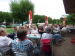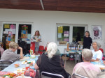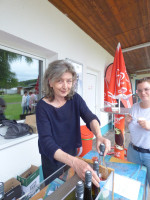 Die Terrasse des Freibades füllte sich am Abend des 24. Juni bis auf den letzten Platz und Ulrike Kroppach kam mit dem Ausschenken der drei besonderen Weine des Abends – dem Rosé "Swimming", dem Chardonnay "Surfing" und dem Rotwein "Biking" – kaum hinterher. Zu dem Wein gab es Baguette mit leckeren, teils selbstgemachten Aufstrichen.