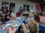 Insgesamt drei Abschnitte las Ulrike Puderbach aus ihrem aktuellen Koblenz-Krimi "Tod im Weinberg". Es ging nicht nur um die Morde im Buch, sondern auch Geschichten um den Wein an der Mosel und die Winninger Weinhex kamen nicht nicht zu kurz. Nach jedem Abschnitt hatten die Gäste in der Pause Zeit, ihre Gläser aufzufüllen, sich den gut gefüllten Büchertisch anzuschauen oder auch die Autorin ein paar Dinge zu fragen. Nach knapp zwei Stunden war der offizielle Teil der Lesung beendet und es ging zum gemütlichen Beisammensein über. Bei mildem Sommerwetter lud das schöne Ambiente zum Verweilen und Plauschen ein.