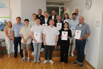 Elias Bohl und Simon Rommersbach beendeten ebenfalls erfolgreich ihre Ausbildung im 3. Einstiegsamt und wurden zu Verbandsgemeindeinspektoren im Beamtenverhältnis auf Probe ernannt. Niklas Bäcker absolvierte seine Ausbildung im 2. Einstiegsamt erfolgreich, ebenso Colin Krüger, der nun als Fachkraft für Wasserversorgungstechnik tätig ist. Neu im Team ist Marcel Henn, der mit der Ausbildung zum Verbandsgemeindesekretär (2. Einstiegsamt) einen neuen Lebensabschnitt begonnen hat.