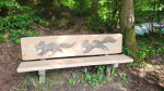 Direkt oberhalb des Tierparks markiert nun eine Eichhörnchenbank den Startpunkt des Wanderwegs. Auf der Rückenlehne: ein liebevoll gestaltetes Motiv, das zwei Eichhörnchen zeigt - das eine jagt das andere, das zweite trägt eine Nuss im Maul. Die Szene wirkt lebendig, fast filmisch, was nicht zuletzt der aufwendigen Reliefarbeit zu verdanken ist.