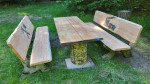 Die neuen Rückenlehnen zeigen zwei Szenen aus der Bergbauvergangenheit der Region: Auf der einen Seite stehen die Begriffe "Glückauf" mit den Motiven "Hackl" und "Meisel" - klassische Werkzeuge und Grußformeln aus dem Bergbau -, auf der anderen Seite ist die historische Grubenbahn in Holz verewigt, wie sie einst in Niederfischbach im Einsatz war. Ergänzt wird das Ensemble durch einen robusten Holztisch, der die beiden Bänke verbindet. So entstand eine stimmige Sitzgarnitur, die zur Rast einlädt und zugleich einen Moment der stillen Auseinandersetzung mit der Geschichte ermöglicht.