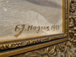 Die meisten seiner Werke sind im Bild signiert und mit Jahreszahl versehen. Sollten Sie den Verdacht haben, möglicherweise ein Bild des Künstlers entdeckt zu haben, so empfiehlt sich auch ein Blick auf die Rückseite der Leinwand oder des Rahmens – hier findet sich im Regelfall ein persönlich von Magnus angefertigtes Etikett mit näheren Details zum Herstellungszeitpunkt und manchmal auch einem Werkstitel.