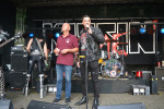 Dann war es so weit, begleitet von Beifall der Besucher bahnte sich die Band einen Weg durch das Publikum zur Bühne. Dort begrüßten Stadtbürgermeister Jannik Pape und Dirk Weimer, Vorsitzender des Kulturrings Westerburg, die Band und die Hardcore-Fans auf dem Gelände. Das Outfit von Jannik Pape fiel ins Auge: Stilgerecht gewandet in Lederjacke mit Metallbesatz und KISS-T-Shirt, outete er sich als überzeugter Metall-Fan. Ein Zuschauer rief Pape zu, der sich für den Landtag in Mainz bewirbt: "Jannik, wenn du mit dieser Kleidung in den Wahlkampf ziehst, erreichst du 100 Prozent."