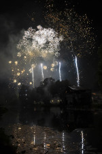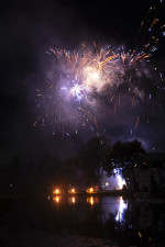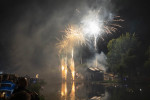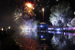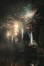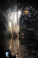Kurz vor 22 Uhr war es dann soweit: Die Junggesellen kündigten das große Feuerwerk an, und die Besucher drängten sich am Wiedufer. Mit passender Musik und wechselnder Beleuchtung des Wiedufers stiegen die Raketen in den Himmel. Immer wieder gab es Applaus von den Tausenden von Zuschauern. Zwischendurch verwandelte sich die Brücke über die Wied in einen Wasserfall.