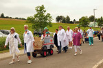 Gegen 16 Uhr war es dann so weit und die wartenden "Zaungäste" entlang der Bahnlinie freuten sich auf den Zug. Die Teilnehmerinnen und Teilnehmer hatten kleine und größere Wagen gebaut und präsentierten diese und ihre Vereine nun dem Publikum, das mit Applaus nicht sparte. Ein besonderes Highlight war ein, an einem Bauzaunteil befestigtes Plakat, auf dem auf die Situation in der Gesundheitsversorgung hingewiesen wurde. Die Initiative "Gute Gesundheitsversorgung" hatte sich Gedanken zu einem neuen Klinikstandort gemacht und diesen dann zwischen Volkerzen und Obererbach "gefunden". Dieser "Seitenhieb" in Richtung der Verantwortlichen wurde von den Zuschauern mit viel Applaus belohnt.