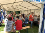 Es waren sehr viele Bürger, Freunde aus Nachbardörfern und auch vorbeikommende Wanderer und Radfahrer vor Ort. Das Kuchenbuffet war schnell geplündert und auch Steaks, Würstchen sowie die selbstgemachten Salate fanden reißenden Absatz.
