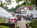 Dermbach. Am Freitag (12. September) um 18 Uhr begann die gemeinsame Abschlussübung der Jugendfeuerwehren Daaden und Herdorf. Auf dem Concordia-Gelände in Dermbach bot sich den zahlreichen Zuschauern folgendes Szenario: Ein angenommener Waldbrand forderte die jungen Feuerwehrleute heraus. Sie retteten mehrere verletzte Personen mit Tragen und technischer Ausrüstung aus dem Gelände und einem Gebäude. Gleichzeitig bekämpften sie das Feuer mit mehreren Strahlrohren und den neuen Kreisregnern, die ähnlich wie Bewässerungsanlagen funktionieren und Wasser in einem bestimmten Radius versprühen. Die Wasserversorgung wurde dabei realitätsnah über eine Zisterne gesichert.