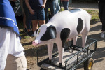 Die "Hölzerne Muck", das Wahrzeichen des traditionsreichen Steimeler Kartoffelmarkts, wurde von Damen des Verkehrs- und Verschönerungsvereins zu Klängen des Musikvereins Marienrachdorf am Samstagmittag (20. September) in einem Gitterwägelchen zum Festplatz gezogen. Dort wurde sie auf die Theke gehievt und als Schnapsspender präpariert, damit sie bis zum Ende des Markts den besonderen Muckensaft spenden kann.