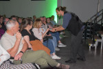 So erzählte der Kabarettist Claudius Pläging von seinem Traum über den Bundespräsidenten Frank-Walter Steinmeier, der ihm in Paris die Haare geschnitten habe. Er nahm in seinem Auftritt auch deutsche Sprichwörter aufs Korn. So machte er kurzerhand aus „Morgenstund hat Gold im Mund“ „Morgenstund hat Mundgeruch“ und sorgte für viele Lacher. Im nächsten Raum sorgte die Singer-Songwriterin Reni mit ihrer Musik für Gänsehaut-Momente. Nur mit ihrer Stimme und ihrer Gitarre verzauberte sie das Publikum. Verzaubert wurde das Publikum auch von Magier Christoph Demian, der mit viel Humor und Selbstironie nicht nur für Lacher sorgte. Seine Kunststücke versetzten das Publikum in Erstaunen und sorgten für offene Münder. Er bezog das Publikum in seine Show mit ein und ließ zum Beispiel eine Zuschauerin eine Karte mit ihrem Namen unterschreiben. Diese Karte versteckte er im Stapel, bevor er sie gefaltet aus seinem Mund wieder erscheinen ließ. Der anschließende Beifall war ihm sicher.