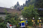 Die Einsatzkräfte konnten den Brand schnell lokalisieren und bekämpfen. Trotz des schnellen und professionellen Einsatzes wurde der Dachstuhl erheblich beschädigt. Um an weitere Glutnester zu gelangen, musste das Dach stellenweise abgedeckt werden. Die Einsatzleitung teilte die Einsatzstelle in mehrere Abschnitte, Brandbekämpfung, Löschwasserversorgung und Atemschutz, auf. Durch den starken Bewuchs war auch die Brandbekämpfung von der Rückseite sehr schwierig. Die Drehleiter verfügt über ein sogenanntes Knickgelenk, mit dem auch die, im hinteren Bereich liegende, Gaube erreicht werden konnte. Im Bereich des Dachstuhles mussten Teile der abgehängten Decke entfernt werden.