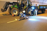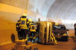 Innerhalb kurzer Zeit nach dem ersten Alarm waren, für die Übung, starke Kräfte der Freiwilligen Feuerwehren sowie des DRK vor Ort. Die Einsatzleitung lag in den Händen des Wehrführers des Löschzugs Betzdorf, Niclas Brato. Im Tunnel war es, infolge eines vorausgehenden Unfalls, zu weiteren Unfällen gekommen. In einem Fall war eine Person (Übungspuppe) unter dem Rad eines Traktors eingeklemmt. Da der Tunnel durch zahlreiche Fahrzeuge "verstopft" war, mussten die Feuerwehrleute die Gerätschaften zu den einzelnen Einsatzorten bringen. Auch dies, so der Wehrleiter Markus Beichler, entspricht der Realität. Die Belastung und auch die Nervosität war einigen Einsatzkräften anzumerken. Die Feuerwehrleute mussten unterschiedliche Gerätschaften, darunter hydraulische Schere und Spreizer, Hebekissen und anderes in den Einsatz bringen, um die betroffenen Personen befreien zu können.