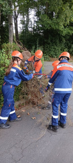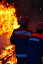 Auch das Abendprogramm bot Abwechslung: Während "Chefkoch" Simon Bröcker den Grill anheizte, folgten neue Alarmierungen. Ein umgestürzter Baum und eine Ölspur mussten beseitigt werden, bevor ein Brand im Etzbacher Bauhof den größten Einsatz des Tages darstellte. Unter realistischen Bedingungen löschten die Jugendlichen erfolgreich einen großen Holzstapelbrand, unterstützt von erfahrenen Feuerwehrleuten.