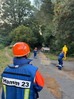 Hamm (Sieg). Nachdem die Jugendlichen mit Taschen und Schlafsäcken im Feuerwehrhaus eingetroffen waren, wurden sie von Jugendfeuerwehrwart Nico Urban und die Betreuer auf die Fahrzeuge verteilt. Gerade hatte die erste Ausbildungseinheit zur Türöffnung begonnen, als die Funkmeldeempfänger eine Vermisstensuche ankündigten. Gemeinsam mit der Rettungshundestaffel suchten die Jugendlichen das Gelände ab und fanden alle "vermissten Personen" sicher.