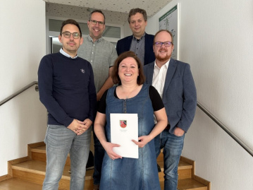 Kirchen. Im Rahmen einer kleinen Feierstunde im Kirchener Rathaus erhielt Andrea Höfer ihre Ernennungsurkunde zur Verbandsgemeindeamtfrau. Bürgermeister Andreas Hundhausen überreichte die Urkunde und dankte Höfer für ihre bisherige Arbeit. Auch Büroleiter Michael Dützer, Fachbereichsleiter Tim Kraft und Personalratsvorsitzender Alexander Grindel gratulierten.