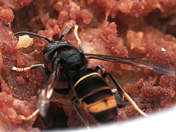 Ein Exemplar zeigte sich auf den Resten von Apfelkompott im Wissener Stadtteil Köttingerhöhe. Diese Hornissenart stammt ursprünglich aus Südostasien und ist 2004 über Frankreich nach Deutschland eingewandert.