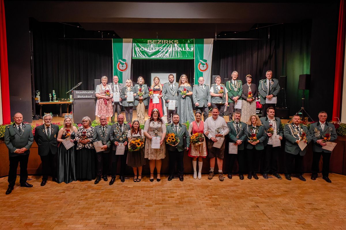 Gegen 21 Uhr begann der Ehrungsblock mit der Auszeichnung der Bezirksjugend. Louis Eisenmenger vom SV Hubertus Oberrod wurde als neuer Bezirksjugendkönig proklamiert, gefolgt von Sophie Richter (SV Leuzbach-Bergenhausen) und Fabienne Renne Endes (KKSV Orfgen). Der Jugendförderpreis ging an die Vereine Leuzbach-Bergenhausen, St. Hubertus Oberrod und Maulsbach.