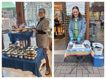 Im Unikum Regionalladen boten zahlreiche Regalmieter Kostproben ihrer Produkte an. Besucher konnten frisch gebackene Reibekuchen, selbstgemachtes Apfelkompott sowie Schafsspezialitäten von Dropeschafen der Familie Jung genießen. Dazu gab es Wein und hausgemachtes Tiramisu von Stemmer Bräu. Ein besonderes Highlight war ein Fruchtaufstrich, hergestellt vom ehrenamtlichen Ladenteam aus regionalem Obst. Diese Produkte sind auch dauerhaft im Laden erhältlich.