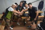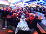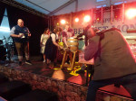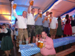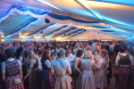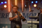 Angeführt von ihrem Bandleader Michael “Max“ Weisenberger, sprühte die Band nur so vor Spielfreude und es gelang, ihre Energie in das Festzelt zu transportieren. Alle Songs wurden gefeiert und so dauerte es nicht lange, bis die ersten Besuche sich auf Bänke und Tische stellten, um zu feiern. “Max“ trieb die Besucher regelrecht vor sich hin, denn er animierte ohne Unterlass, sich zu bewegen, Hände nach oben, nach links und rechts sich drehen, um dann gemeinsam die Maß zu heben, um anzustoßen. Die Band bewies zudem eine hervorragende Kondition, da es fast zwei Stunden dauerte, bis sie die erste Pause einlegte, die wohlverdient war.