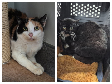 Suna, die zierliche Schwarze, wurde 2022 geboren. Sandra, ihre deutlich ältere Gefährtin, ist Jahrgang 2016 und trägt ein schwarz-rot-weißes Fell. Beide stammen aus einem befreundeten Tierheim, das Anfang des Jahres keine freien Plätze mehr hatte. Über ihr früheres Leben ist nichts bekannt. Vieles deutet darauf hin, dass sie nie engen Kontakt zu Menschen hatten.