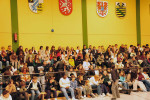 Auf der Tribüne der Großsporthalle konnten sich Schülerinnen und Schüler sowie Lehrkräfte von der Leistung der Mitschülerinnen und Mitschüler überzeugen. Das Publikum sparte nicht mit Applaus für die jungen Musikerinnen und Musiker.