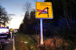 Der Fahrer des Fahrzeugs war offensichtlich nach rechts von der Straße abgekommen. Hierbei wurde ein Hinweisschild erheblich beschädigt. Es handelte sich, nach Informationen der Polizei, um einen sogenannten Alleinunfall.