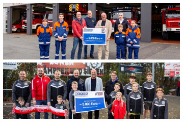 Die "BEYER-Mietservice KG" setzt ihr soziales Engagement fort und unterstützt auch in diesem Jahr zwei regionale Vereine mit einer Spende. Insgesamt 10.000 Euro fließen in die Förderung der Jugendfeuerwehr Hamm/Sieg und der Fußballjugend des TuS Germania Bitzen. Die symbolischen Schecks wurden Ende Oktober persönlich übergeben.