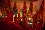 Im Schloss ist Hochprozentiges in Flaschen zu finden. In einem großen Weinkisten-Weihnachtsbaum entdeckt man Besonderheiten wie etwa Bratapfelcrema und Pop Corn Rum. Es glitzert und funkelt in allen Räumen, die thematisch differenziert sind. Englische Oldtimer-Fahrzeuge mit „Merry Christmas“-Aufdruck und Paddingten-Bären, ein weißer Laden mit kreativen Papiersternen und kleinen, von Herzen kommenden Geschenken à la „Wir schenken uns nichts“, eine asiatische Abteilung mit Klangschalen und Kokosschalen, daneben silberne Kränze und „Schönes aus und mit Rheinbrohler Schrott“ und handbemalter Edelstahl-Schmuck machen die Auswahl schwer. Individuelle Kleidung, Haarspangen und Broschen, Duftöle und Parfums ergänzen das exklusive Angebot.