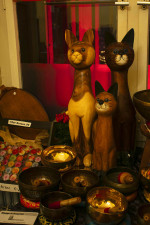 Dort kann man bei Flammkuchen, Raclette-Brot und heißem Kakao eine Pause von der weihnachtlichen Erkundungstour einlegen oder „Alles für den Hund“ oder ein Schaffell erwerben. Noch ein Panoramablick über den Zaun, bevor man in das Kellergewölbe geht, wo dekorative und nützliche Produkte aus Holz, Horn und Schildpatt angeboten werden. Met und besondere Bienenwachskerzen wie Glücksschweinchen werden gern gekauft. Ebenso Holzspielzeug und Deko-Figuren aus Holz und Blech ergänzen bemalten Baumschmuck und eine große Auswahl an Schnäpsen.