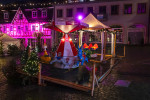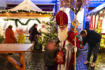 Die Futterkrippe bietet eine bunte Vielfalt an Speisen und Getränken, darunter orientalische Gerichte, Suppe, Gyros, Bratwurst, Waffeln, Pfannkuchen, Mandeln, indische Speisen, heißer Met, Glühwein und alkoholfreie Heißgetränke. Waren aus dem Eine-Welt-Laden, kreative Karten, Misteln, Honig vom Verein „Dunkle Biene“, der sich dem Erhalt der heimischen Biene verschreiben hat und Binenwachskerzen. Der Nikolaus verteilte ab 17 Uhr Süßigkeiten an die Kinder. Für diese stehen vor der Kulisse des Rathauses zwei Mini-Karussells bereit. Der Markt wurde am Freitagabend von Anja Borschers mit Geige und Saxofon musikalisch unterhalten.