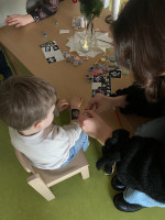 Zu den Angeboten gehörten unter anderem das Verzieren von Plätzchen, eine Foto-Station mit stimmungsvoller Weihnachtsdekoration, Glitzer-Tattoos im Weihnachtsstil sowie kreative Aktionen wie das Gestalten von Fensterdekorationen und weihnachtlichen Teelichtgläsern. Für ruhigere Momente stand ein Ruheraum mit Ausmalbildern, Rätseln und weiteren Beschäftigungen zur Verfügung. Eine Station mit Weihnachtsbüchern lud zum gemeinsamen Schmökern ein. Im Bistro bot ein vielfältiges Buffet, zu dem jede Familie etwas beigesteuert hatte, Raum für Austausch, Begegnung und gemütliches Beisammensein.