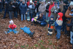 Der Wettergott muss die Stoßgebete von Pfarrer Kleck erhört haben, denn das Wetter erwies sich wieder einmal als launische Diva. Am Nachmittag des Heiligenabends wehte kaum Wind, es fiel kein Regentropfen, der die Erde nässte, und einige Male blinzelte sogar die Sonne verschämt durch die Wolken. Zusammengefasst kann man sagen, dass es zwar bitterkalt war, aber Hauptsache trocken und windstill. Die Steine, die Pfarrer Kleck und seinem Team vom Herzen fielen, waren laut vernehmbar. Somit konnte tatsächlich die Waldweihnacht an dem dafür vorgesehenen Platz stattfinden. Anscheinend hatten viele Besucher ebenfalls noch abgewartet, wie sich die äußeren Bedingungen entwickeln, und sich dann entschieden, die Waldweihnacht zu besuchen. Man konnte feststellen, dass plötzlich, kurz bevor die Waldweihnacht offiziell beginnen sollte, viele Besucher in den Wald strömten. Letztendlich werden es etwa 200 Besucher gewesen sein, darunter auffällig viele Kinder.