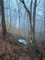 Fast zeitgleich ereignete sich im Einmündungsbereich des Alsdorfer Weges zur Betzdorfer Straße ein schwerer Verkehrsunfall. Hierzu wurden der Löschzug Elkenroth sowie ein Fahrzeug der Feuerwehr Kausen alarmiert. Aus ungeklärter Ursache überquerte ein Pkw die Betzdorfer Straße, touchierte mehrere Pflanzenbeete, ein Verkehrszeichen und einen Fußgänger. Das Fahrzeug stürzte anschließend mitsamt Insasse einen Hang hinab und kam schwerbeschädigt im Bereich eines Bachlaufs zum Stillstand.